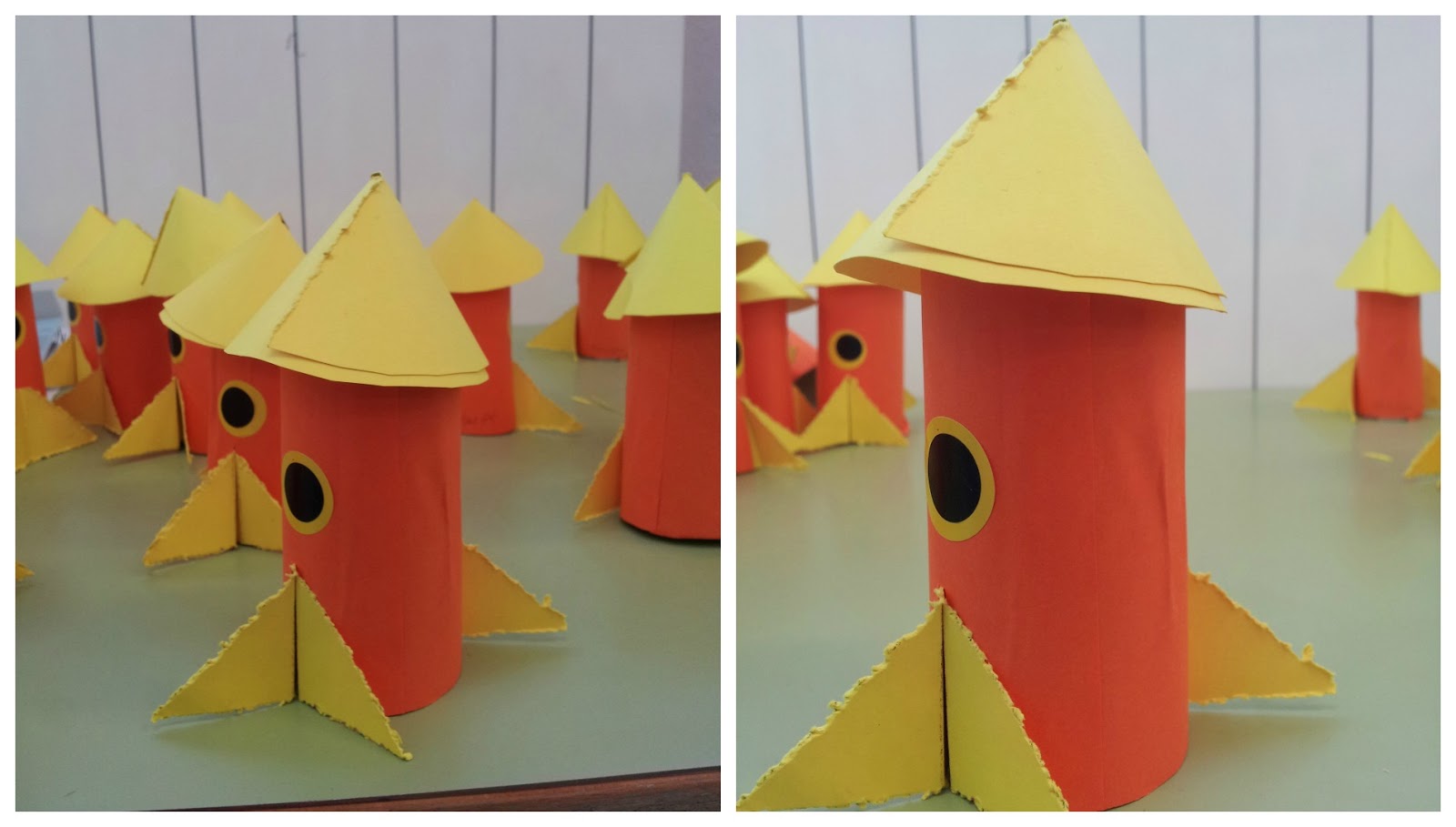 Cohete con tubos de papel higiénico-cocina. Seguimos con las manualidades baratas y con rollos de cartón. En esta ocasión para hacer un cohete espacial, y especial. Pueden usarse rollos de papel higiénico, y también rollos de cocina, depende de cómo queramos hacerlo. Y papel y pinturas para decorar. Esta vez la idea se la hemos robado a.