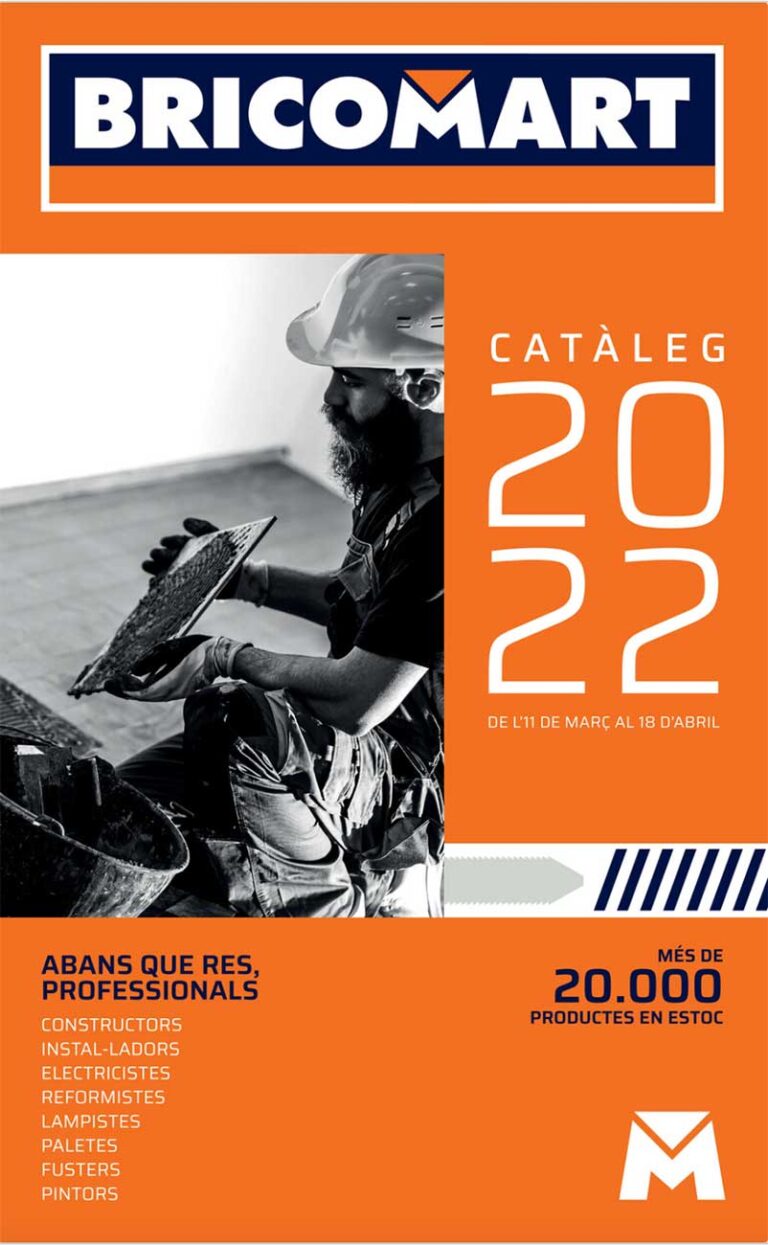 ¡Ya está aquí el Catálogo de BRICOMART 2022! Todo lo que necesitan los Profesionales del sector de la Construcción y la Reforma, en un único lugar . Este año viene cargado de novedades, más de 20.000 Productos en Stock siempre disponible y ¡al mejor Precio de la zona!
