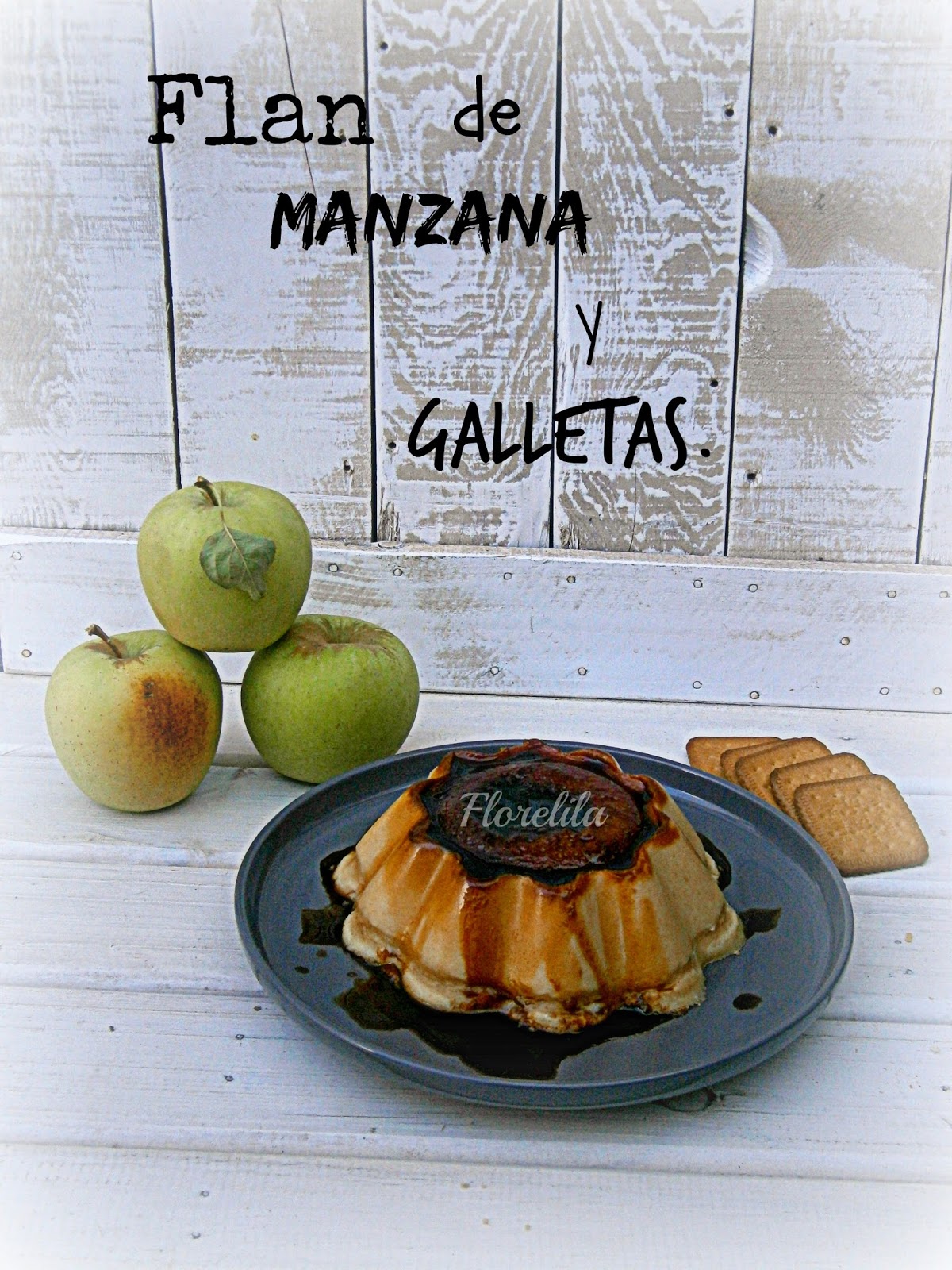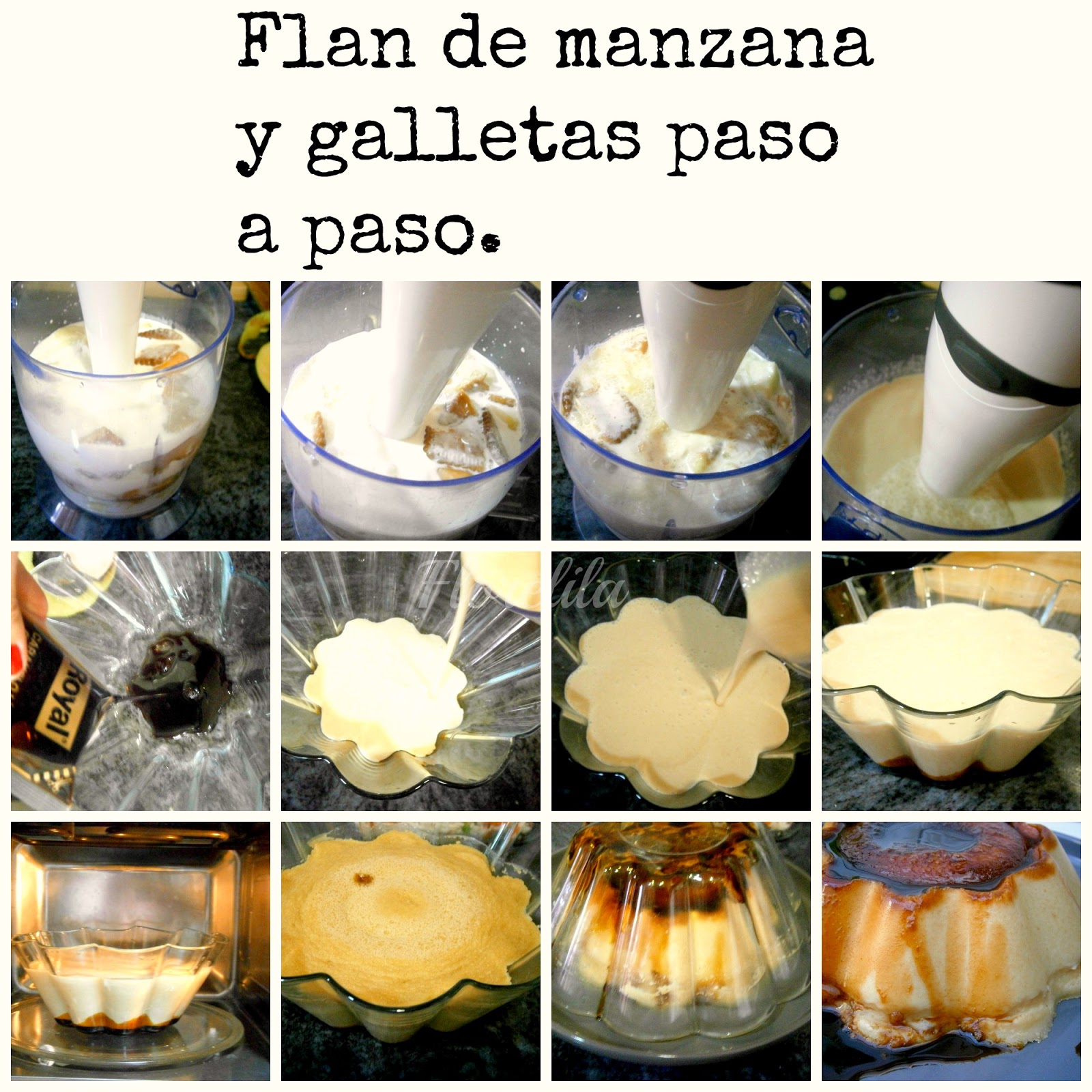 Florelila, recetas y aficiones. Flan de manzana y galletas, paso a
