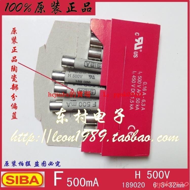 Description. 500MA 500V 6X32 FAST. The SIBA 189020.0.500 fuse is part of their 189020 series. This fuse is a quick acting, ceramic cartridge fuse with nickel plated brass end caps. SIBA 189020 Series Datasheet. SIBA 189020.0.500 fuses. National Fuse carries a large SIBA fuse inventory, Same day shipping, great pricing and technical support.