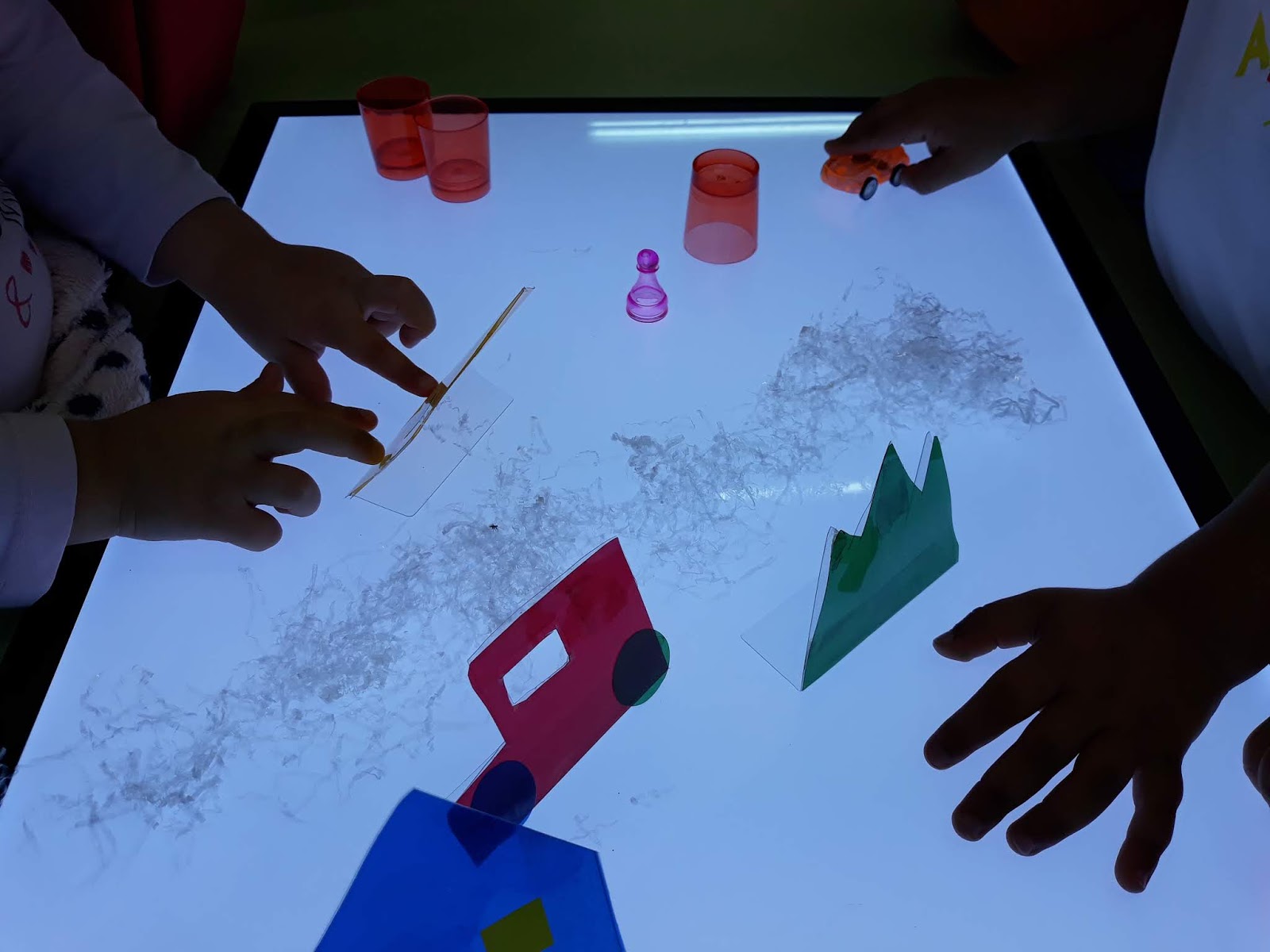 También disponemos de una mesa de luz y arena que permite trabajar estos dos materiales a la vez sin riesgo de que se dañe la superficie. 💡Las mesas de luz tienen su origen en la corriente educativa de Reggio Emilia y se utilizan cada vez más en las aulas para fomentar el aprendizaje lúdico.💠🔶.