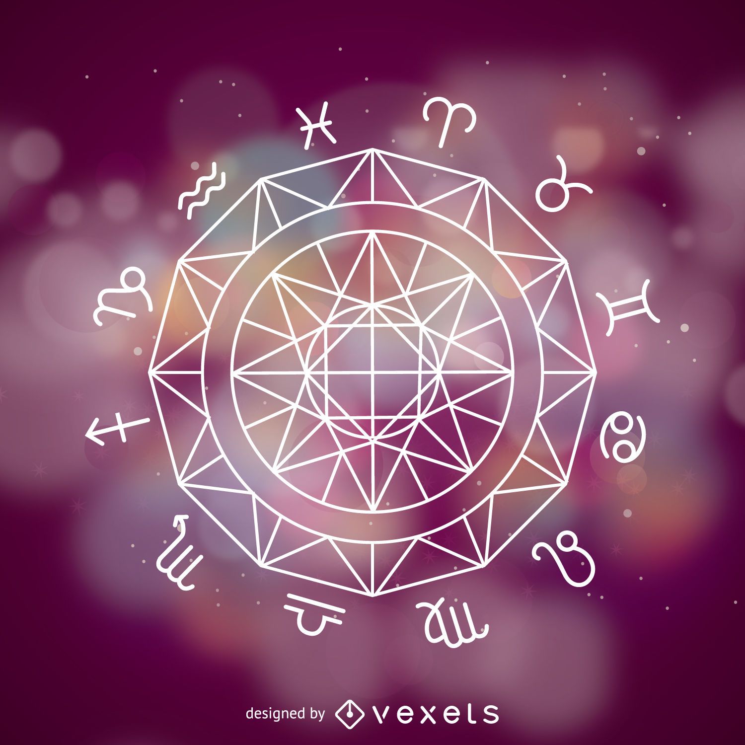 Los signos del zodiaco son una rueda de símbolos que representan las 12 constelaciones que corresponden a las porciones equidistantes a treinta grados de distancia en la franja eclíptica, la línea que marca la ruta del Sol, la Luna y otros planetas en el cielo. Estos son Aries, Tauro, Géminis, Cáncer, Leo, Virgo, Libra, Escorpio, Sagitario.