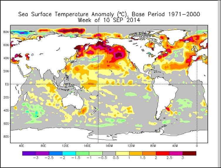 Anomalías globales de la temperatura del agua del mar